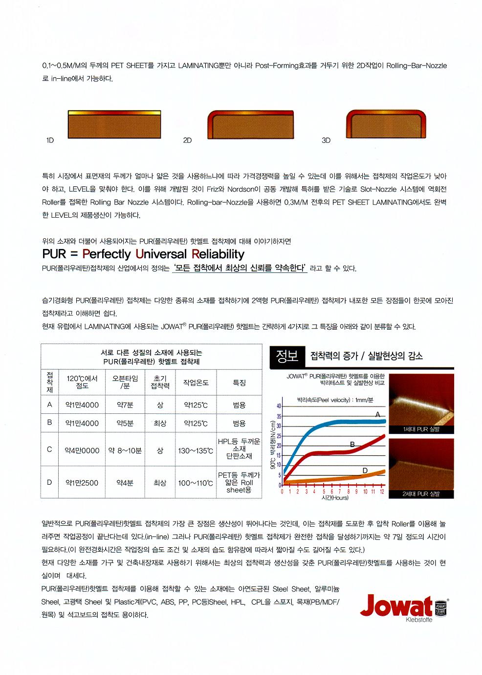 <PUR(Æú¸®¿ì·¹Åº)Á¢ÂøÁ¦¿Í High- Gross(°í±¤ÅÃ) Laminating> ¶ó´Â Á¦¸ñÀ¸·Î PUR(Æú¸®¿ì·¹Åº)Á¢ÂøÁ¦ÀÇ Æ¯Â¡°ú HOMAG ÄÚ¸®¾ÆÀÇ Á¶¿òÀ» ¹Þ¾Æ High- Gross(°í±¤ÅÃ)¿¡ °üÇÑ ³»¿ëÀ» ´ã¾Ò½À´Ï´Ù.